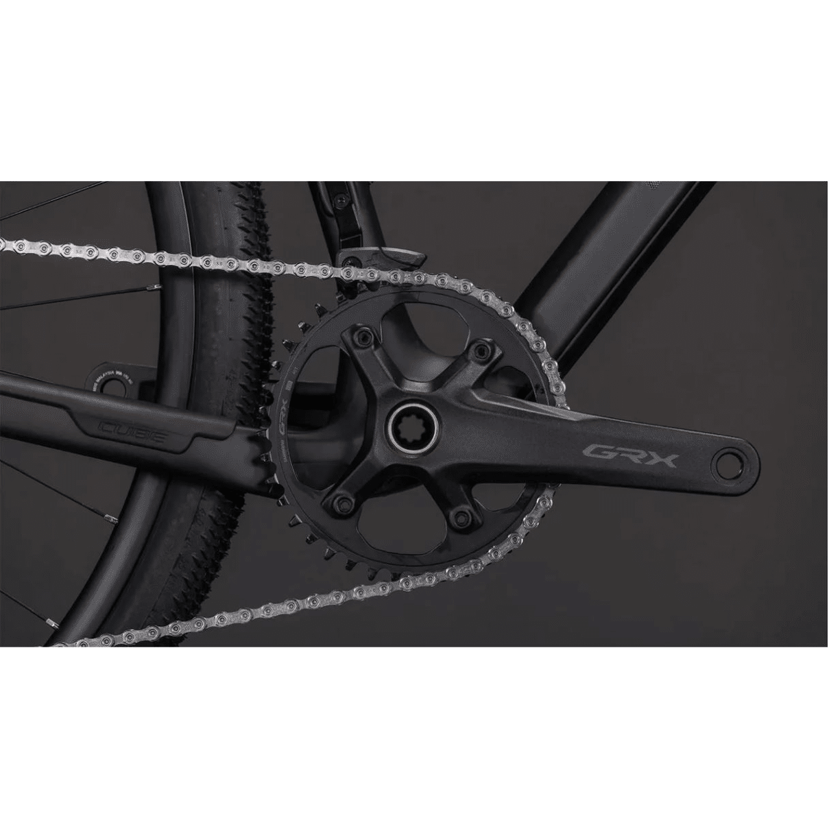 Le carbone C:62 développé par Cube combine légèreté et rigidité ciblée. Sur le terrain, le vélo reste nerveux quand on appuie, mais absorbe suffisamment les aspérités pour éviter la fatigue prématurée. La géométrie gravel privilégie la stabilité, surtout quand le terrain devient irrégulier ou chargé.