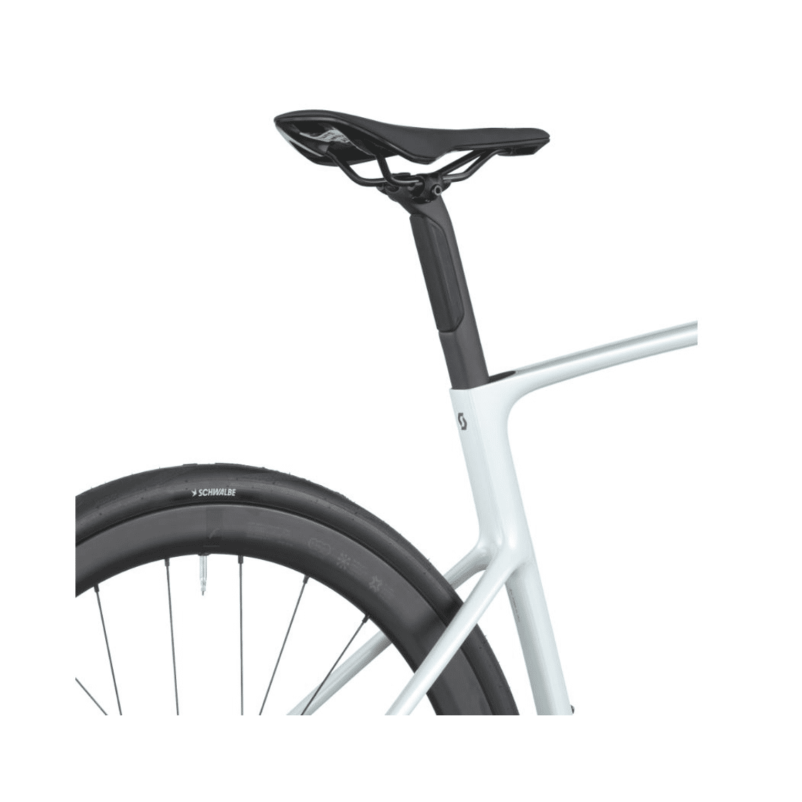 Le cœur du Addict 20, c’est son cadre en carbone Scott conçu pour l’endurance. La rigidité est placée là où elle sert vraiment : au boîtier de pédalier et à l’avant. Résultat, les relances sont franches sans renvoyer chaque aspérité dans le dos.