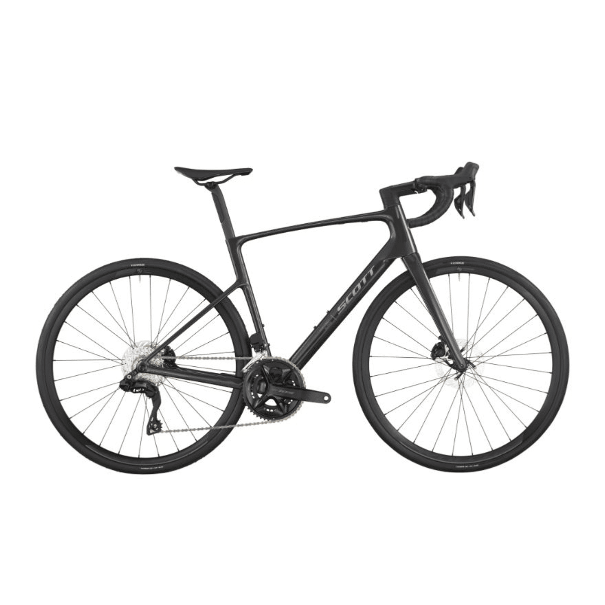 Le Scott Addict 40 reçoit une transmission Shimano 105 DI2, reconnue pour sa robustesse. Les changements de vitesses restent fluides même sous charge, et l’entretien reste simple, un point important pour un vélo utilisé toute l’année.